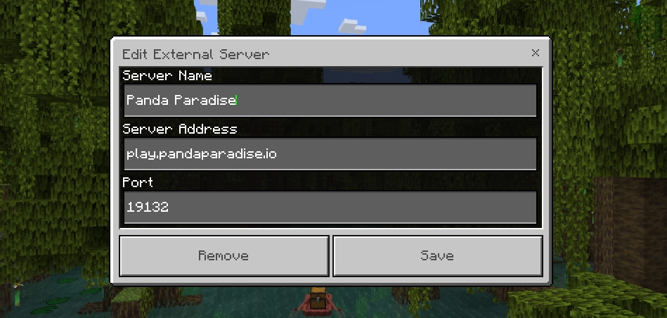 STEP 5: Input a name to be listed for the server. Add play.pandaparadise.io as the "Server Address", and be sure the port is set to 19132.